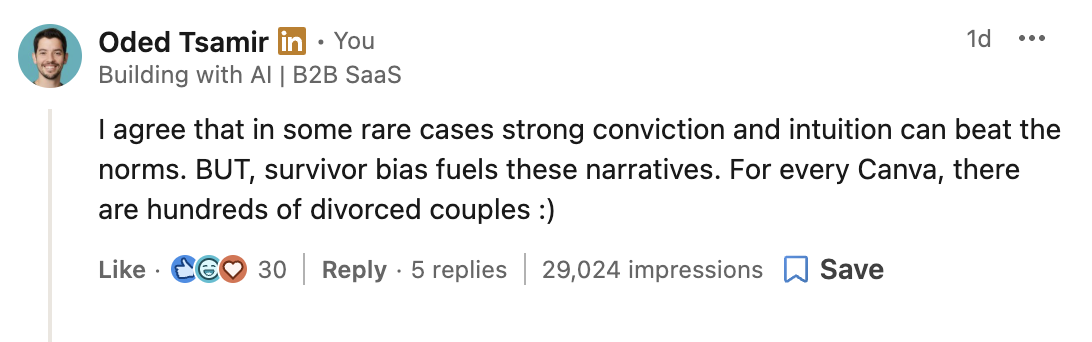 Within 2 weeks of consistent commenting: more inbound opportunities, more followers by your ICP and higher response rates from warmed-up leads